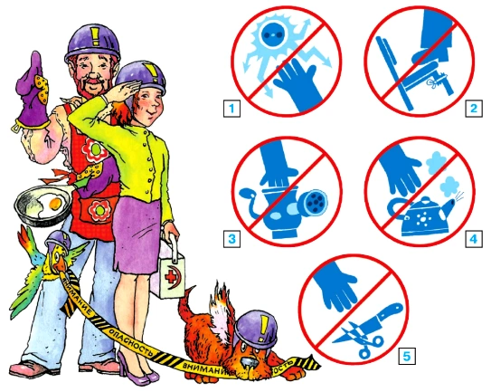 Нагретым утюгом, горячими кастрюлями и включенной плитой можно обжечься.