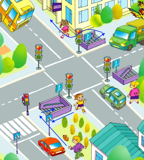1. Какие правила безопасности нужно соблюдать по дороге в школу?