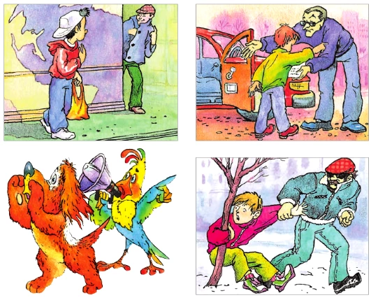 При встрече с незнакомцами нельзя вступать с ними в разговоры, нельзя никуда с ними уходить, нельзя ничего у них брать.