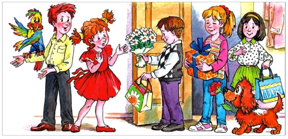 - Подумай, какие правила культуры поведения должны соблюдать гости. Что ребята говорят друг другу при встрече. Что ты пожелаешь Наде в день рождения?