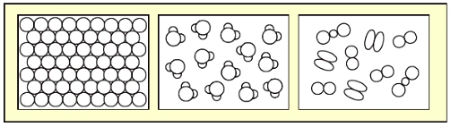На рисунке изображены частицы (слева направо) твёрдых веществ, жидких и газообразных.