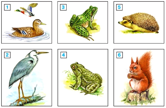 - Руслан предложил такую классификацию: 1, 2 − птицы; 3, 4 − земноводные; 5, 6 − звери.
