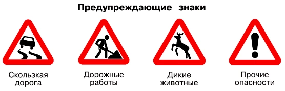 2. Как выглядят предупреждающие знаки? Приведи примеры.