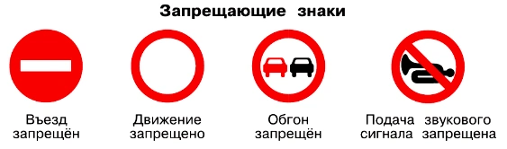3. Как выглядят запрещающие знаки? Приведи примеры.