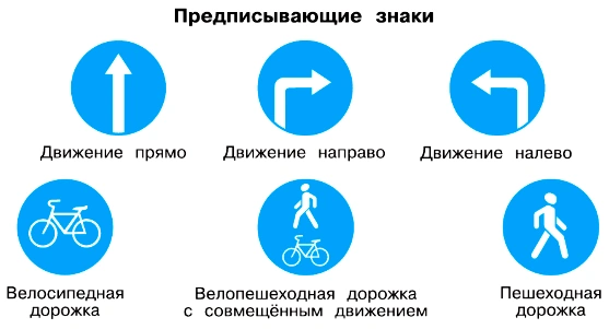 Предписание − это указание соблюдать какое-либо правило. А знаки предписания обозначают, в какую сторону можно двигаться пешеходу, водителю, велосипедисту.