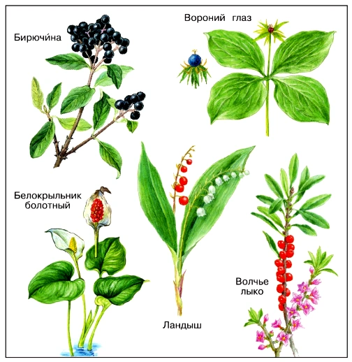 Я знаю ядовитые ягоды — волчье лыко и вороний глаз.